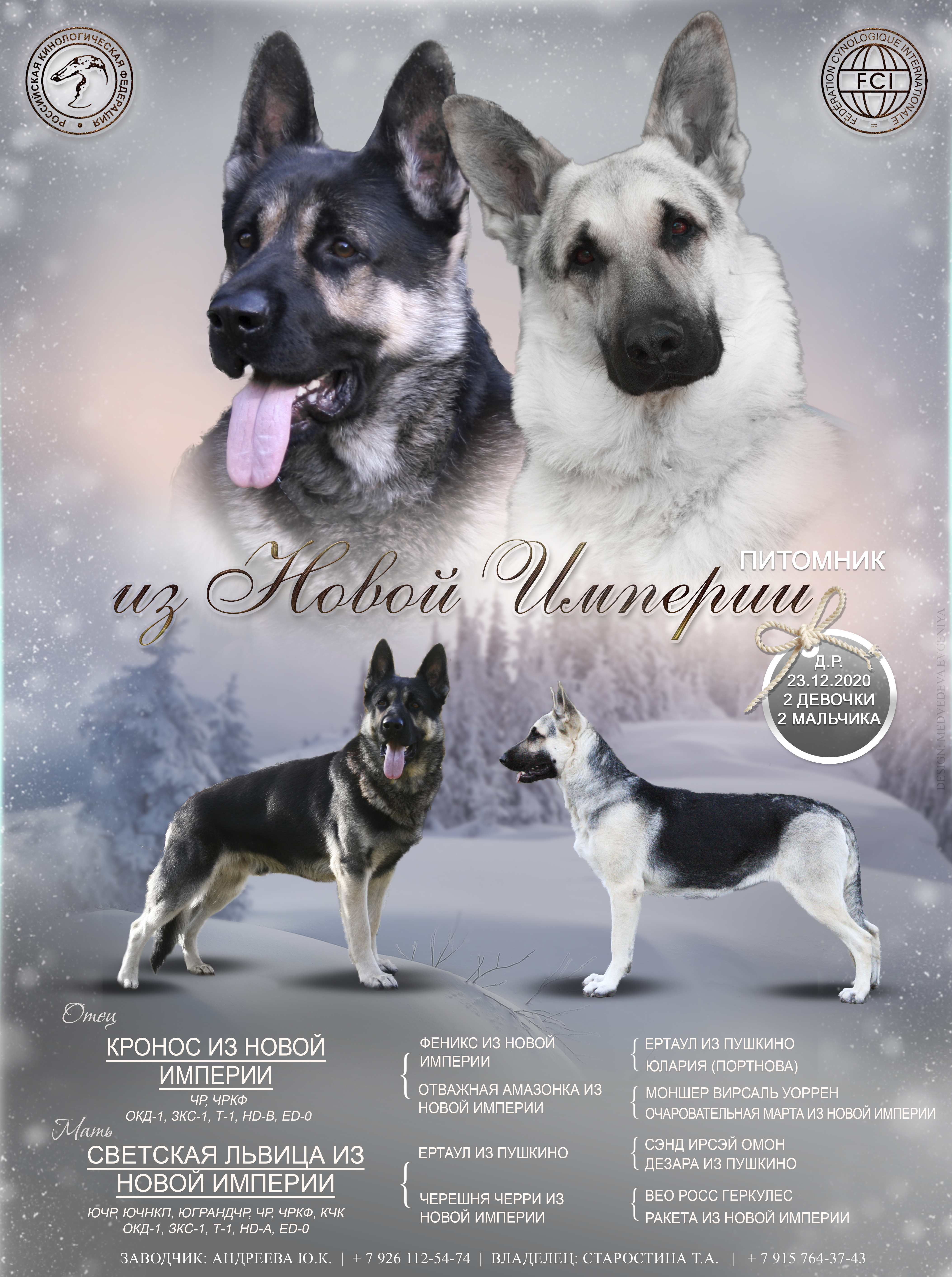 Юный Чемпион России, Юный Чемпион НКП, Юный Гранд Чемпион, Чемпион России,2-х Чемпион РКФ, КЧК, ОКД1, ЗКС-1, Т1, HD-А, ED-0